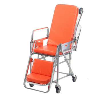 RC-A5救護(hù)車擔(dān)架(座椅式)詳細(xì)描述:1. 該產(chǎn)品采用優(yōu)質(zhì)鋁合金材料制成,配備海綿軟墊,重量輕,安全可靠。2. 擔(dān)架前端裝有兩個上車輪。3. 通過控制右邊手柄能折疊成座椅,靠背角度可以調(diào)節(jié)。4. 擔(dān)...